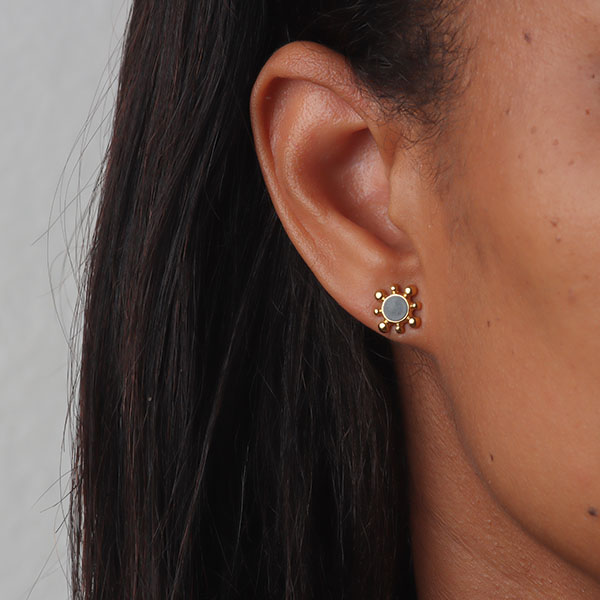 Nos bijoux sont en acier inoxydable 316L. De ce fait, ils ne rouillent pas, ne verdissent pas et sont hypoallergéniques. Veillez à suivre nos Conseils d’entretien pour une durabilité optimale.